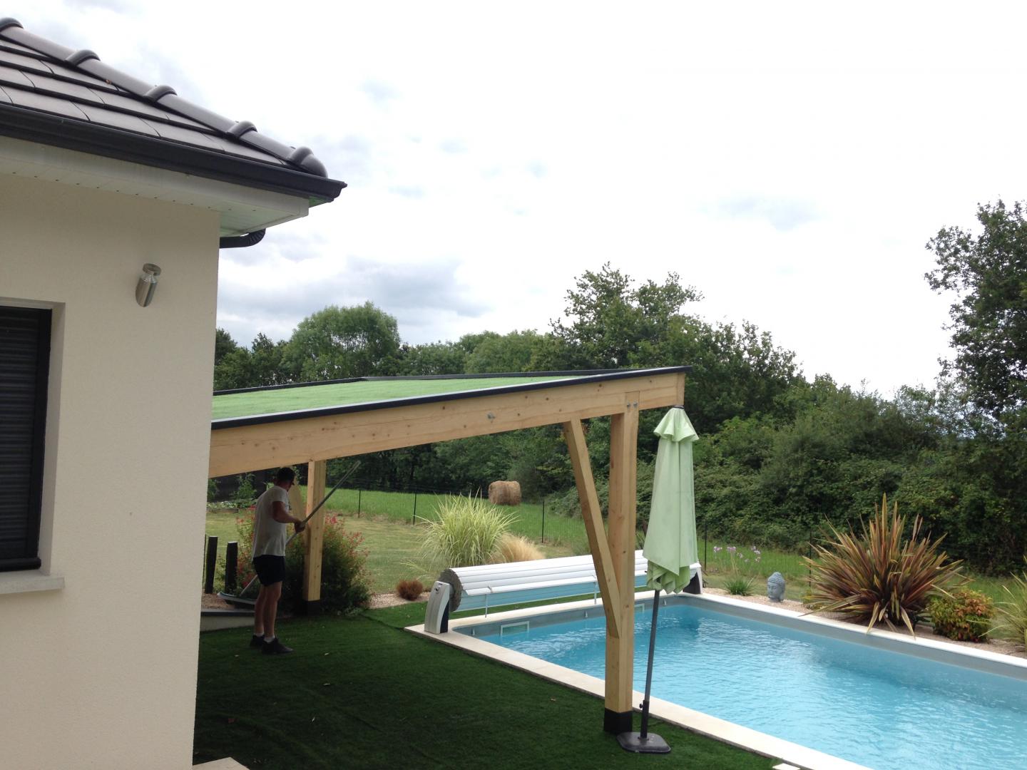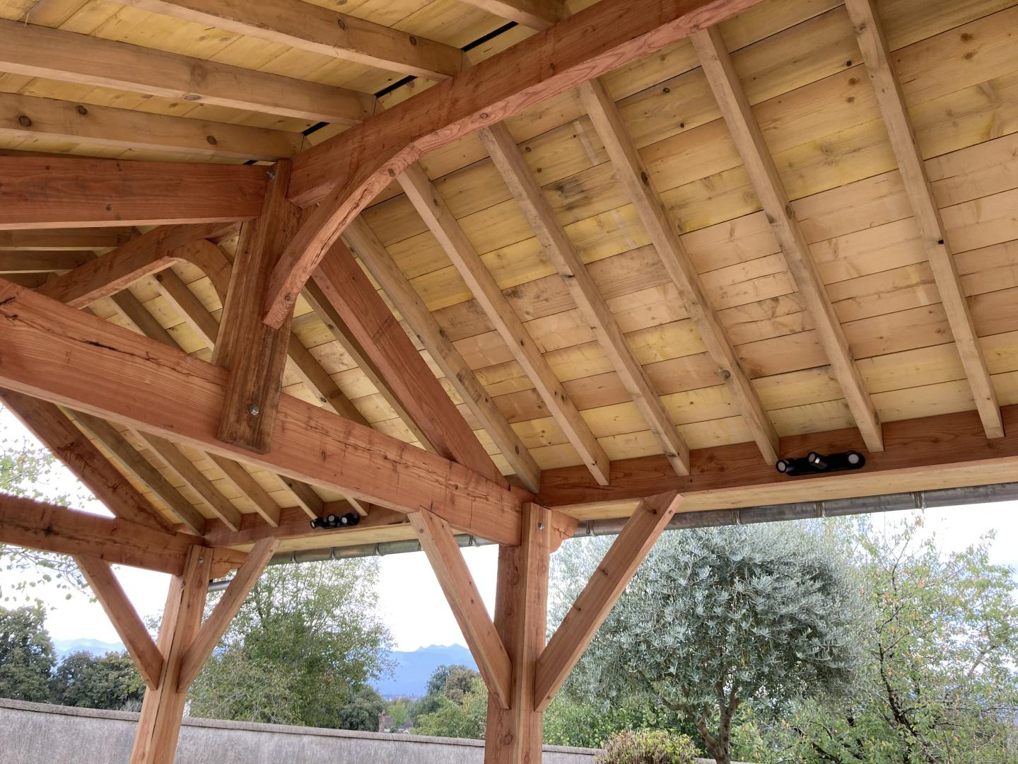 Il est egalement possible d'habiller votre pergolas bois avec différents métaux tels que le zinc, l'alu ou l'acier galva, ...
